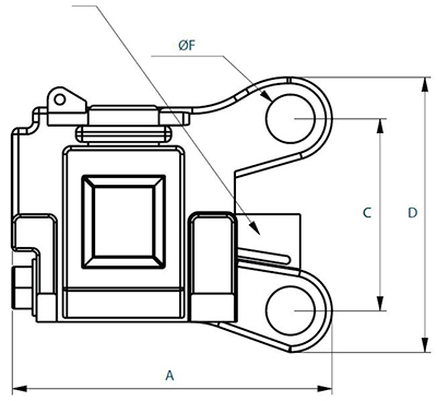 Pattern | Steel wire rope dia.(mm) | SWL (tonne) | A | B | C | D | E | F | Mass (kg) |